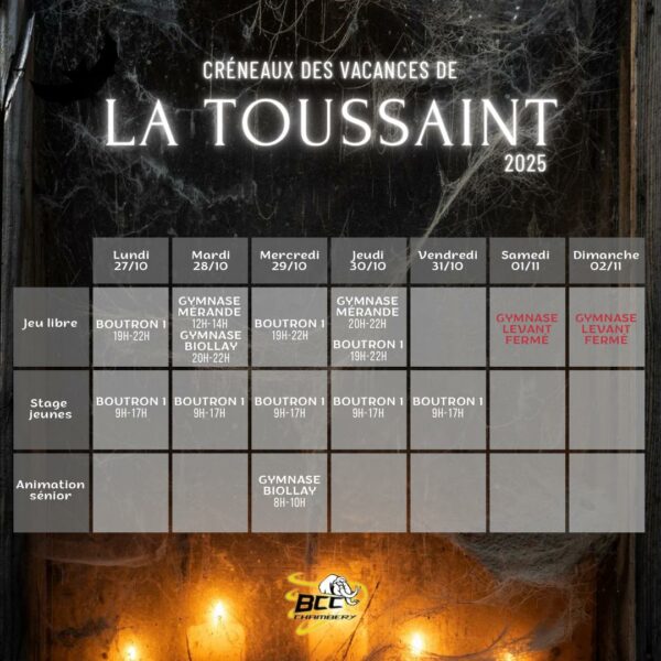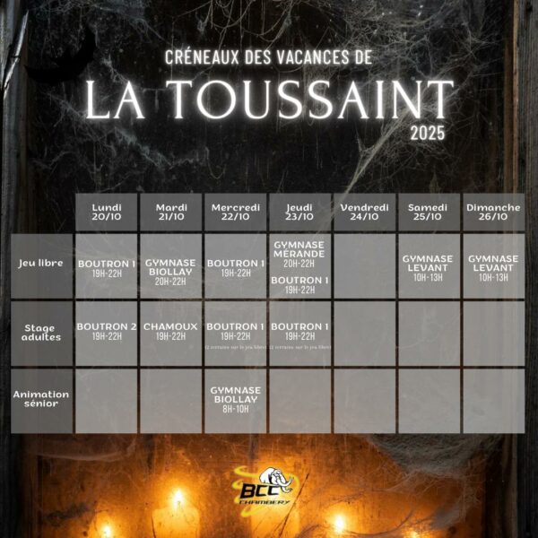 Les créneaux des vacances scolaires de Toussaint sont accessibles sur la page dédiée !